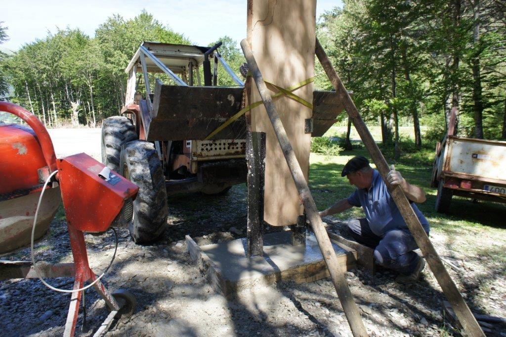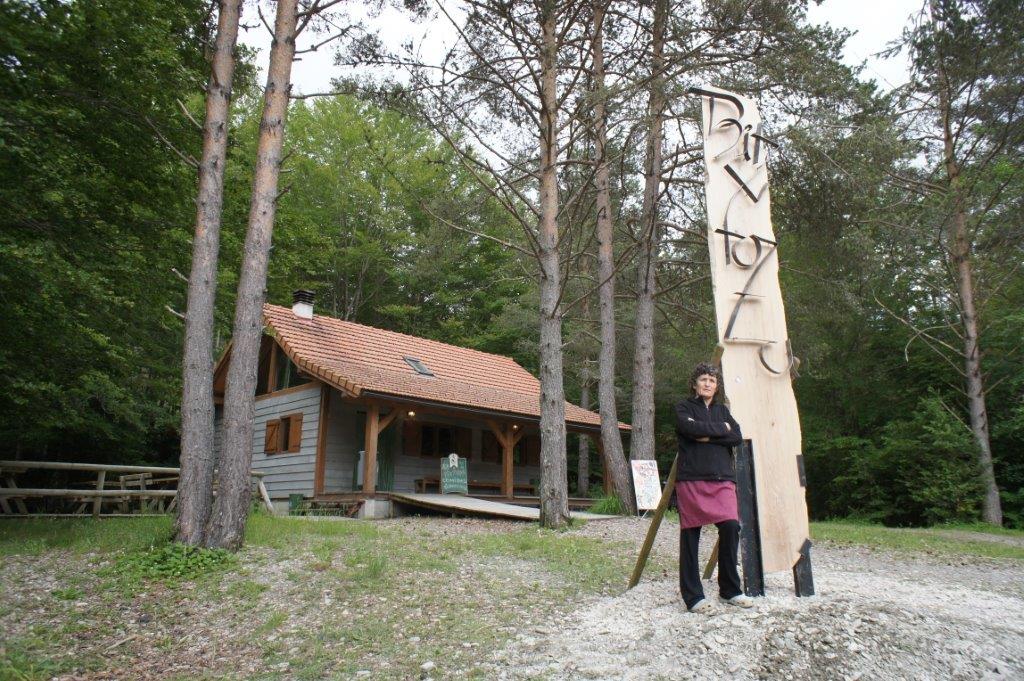 `Bitxitoza´ corresponde a la denominación vasca para `Rrincón del Belagua´, un paradero al lado del río Belagua. Concurrido destino para senderistas, que visitan `La mata de haya´, un singular bosque de haya. El bar de lugar precisaba un reclamo relacionado con la ubicación. Así que recurrimos a la serrería de Isaba para un tablón de haya procedente de la madera del valle. Para las letras se utilizó acero corten, material primario igual que la madera que representan bien el carácter de los pueblos y la naturaleza. La inusual colocación vertical resulta más llamativo y remite a la plantación de un árbol. En la cara posterior fresamos un bajo relieve del transcurso del río Belagua.